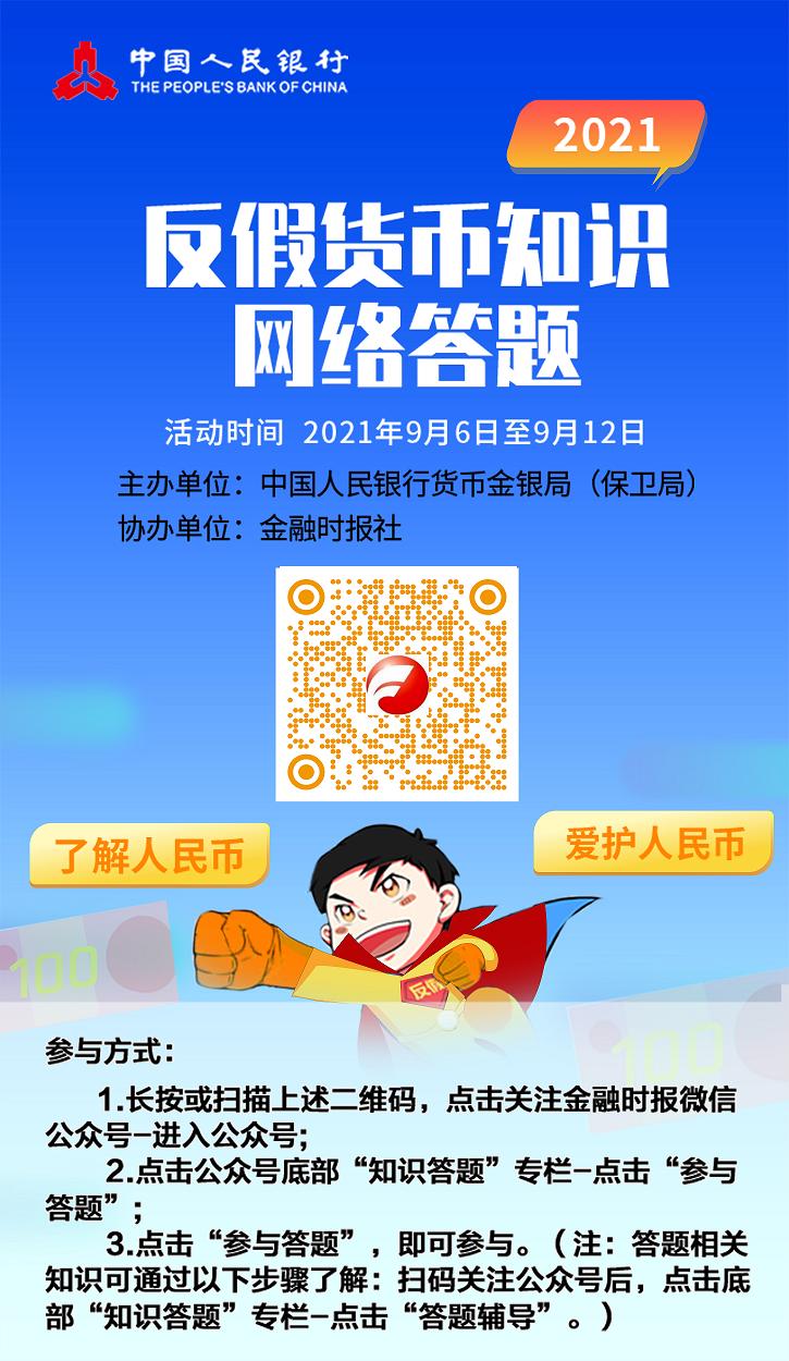 本次活动时间为2021年9月6日至9月12日,活动期间扫描二维码或关注金融时报微信公众号参与答题。