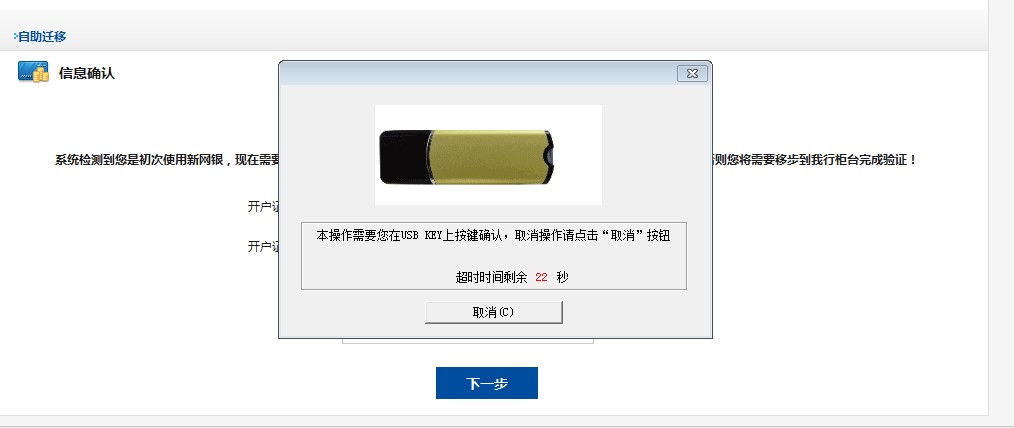 6.客户验证信息,确认后点击下一步,进行usbkey验证,如下图: