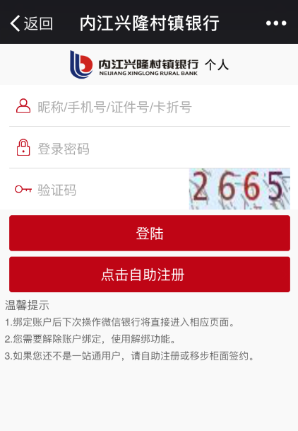1、使用内江兴隆村镇银行微信银行之前,需在我行柜台开立个人结算账户;