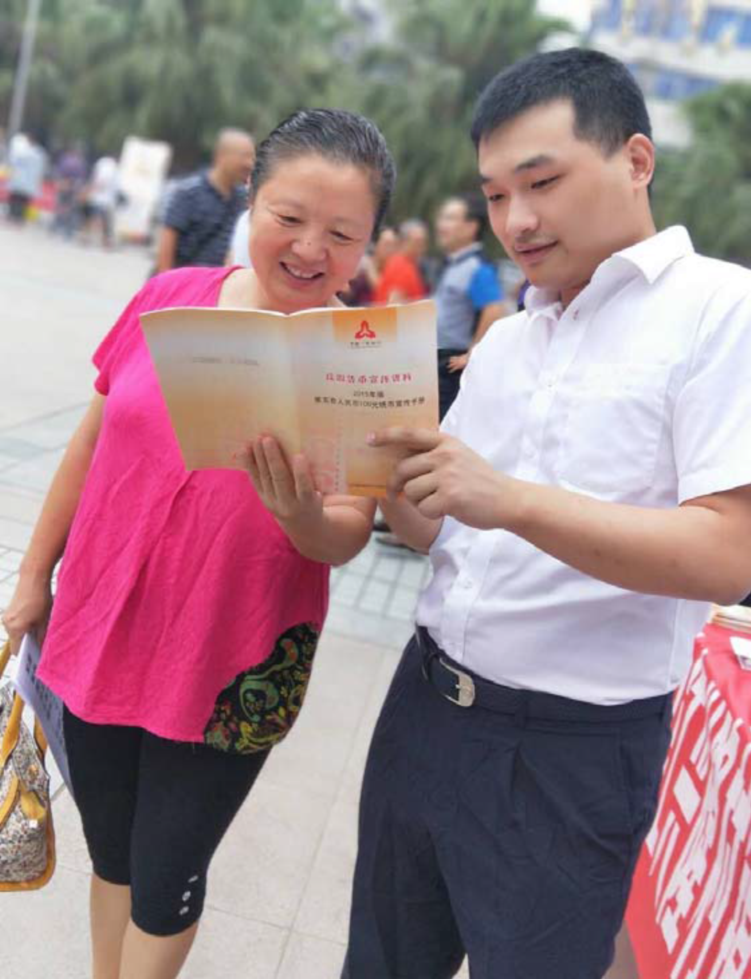 专项宣传“走出去”。为扩大反假知识受众人群,隆昌支行于9月8日在东门广场开展反假货币宣传活动。活动中,宣传人员向社会公众发放了反假货币知识宣传手册,并现场演示人民币票面防伪特征识别方法。针对居民较为关心的发现假币如何处理、如何防范假币作案等问题,宣传人员也一一进行了解答。活动当天,累计发放宣传资料300 份,接受公众咨询100 余次。